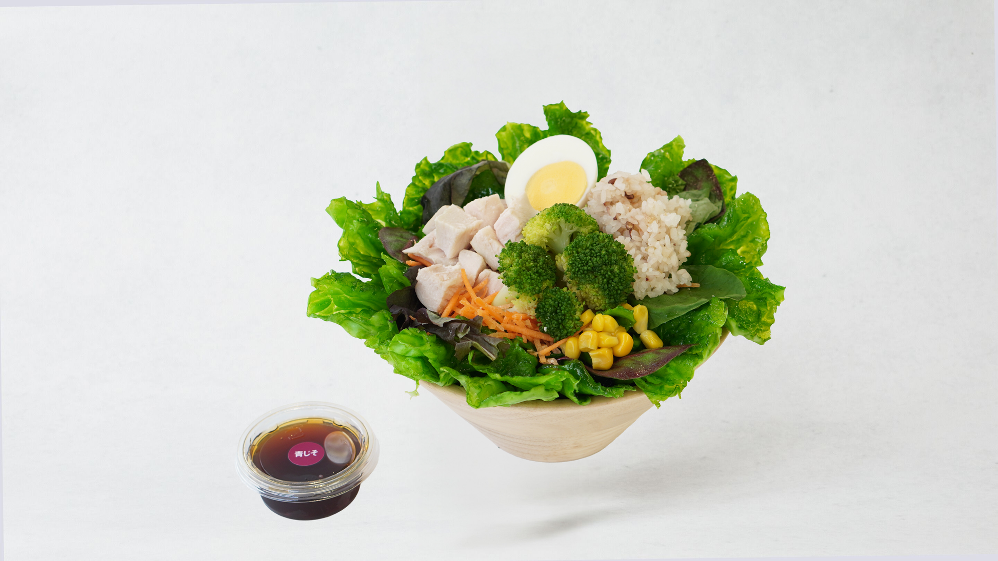 - 内容:レタス、ロメインレタス、ベビーリーフ、人参、コーン、ブロッコリー、さつまいも、ゆで卵、鶏胸肉、十六穀米